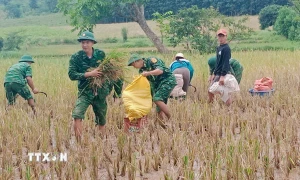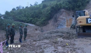 Khoảng 3 tháng qua, thời tiết mưa nhiều gây khó khăn cho quá trình thi công, đặc biệt là đắp nền đường./.