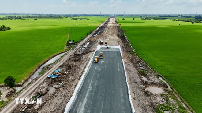 Hiện nhà thầu Trường Sơn đang đẩy nhanh thi công cấp phối đá dăm lớp 1 đầu tiên trên toàn tuyến cao tốc với chiều dài 2km từ nút giao Quốc lộ 91, nhánh nối N1 và N2 với quốc lộ 91 đến km2+00. Đây là đoạn đầu dự án cao tốc giao với Quốc lộ 91, thuộc phường Vĩnh Tế, tỉnh An Giang.
