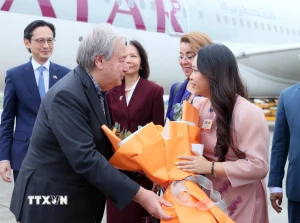 Nhận lời mời của Chủ tịch nước Lương Cường, chiều 24/10, Tổng Thư ký Liên hợp quốc António Guterres đã tới thủ đô Hà Nội, bắt đầu chuyến thăm chính thức Việt Nam và tham dự Lễ mở ký Công ước Liên hợp quốc về chống tội phạm mạng từ ngày 24-25/10.