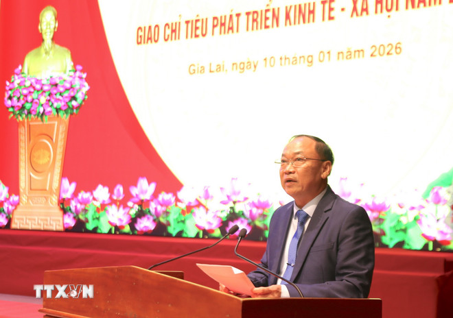 Bí thư Tỉnh ủy Gia Lai Thái Đại Ngọc: Đại hội đại biểu toàn quốc lần thứ XIV của Đảng đã đề ra những định hướng lớn về phát triển đất nước nhanh, bền vững; trong đó nhấn mạnh xây dựng hệ thống chính trị trong sạch, vững mạnh, phát huy sức mạnh đại đoàn kết toàn dân, giữ vững quốc phòng-an ninh và huy động mọi nguồn lực để phát triển kinh tế-xã hội.