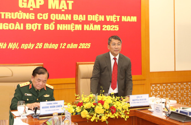 Sáng 26/12, tại trụ sở Bộ Quốc phòng, Bộ Quốc phòng tổ chức gặp mặt các đồng chí Trưởng cơ quan đại diện Việt Nam ở nước ngoài bổ nhiệm năm 2025. Thay mặt Quân ủy Trung ương, Bộ Quốc phòng, Thượng tướng Hoàng Xuân Chiến, Ủy viên Trung ương Đảng, Ủy viên Thường vụ Quân ủy Trung ương, Thứ trưởng Bộ Quốc phòng chủ trì gặp mặt.