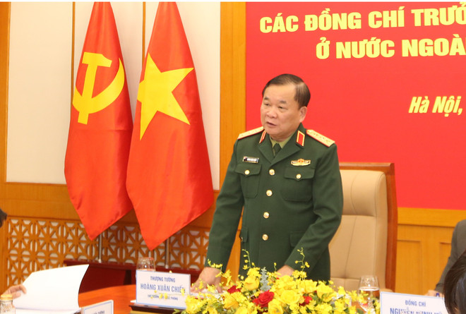 Thượng tướng Hoàng Xuân Chiến mong muốn các đồng chí luôn quan tâm, chỉ đạo, tạo điều kiện thuận lợi để các đồng chí Tùy viên Quốc phòng Việt Nam ở các nước hoàn thành nhiệm vụ, qua đó góp phần triển khai các nhiệm vụ chung của cơ quan đại diện Việt Nam ở nước ngoài.