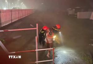 Bão số 10 đã làm cây, cối, cột điện đổ gãy ngổn ngang trên Quốc lộ 8A nên các đơn vị chức năng chưa tiếp cận hiện trường để giải phóng đất đá, cây cối các điểm sạt lỡ./.