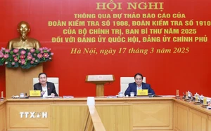 Chiều 17/3, ngay sau hội nghị thông báo dự thảo báo cáo của Đoàn kiểm tra số 1910 đối với Đảng ủy Chính phủ, Đoàn Kiểm tra số 1908 của Bộ Chính trị, Ban Bí thư năm 2025 tổ chức hội nghị thông báo dự thảo báo cáo của Đoàn đối với Đảng ủy Quốc hội.