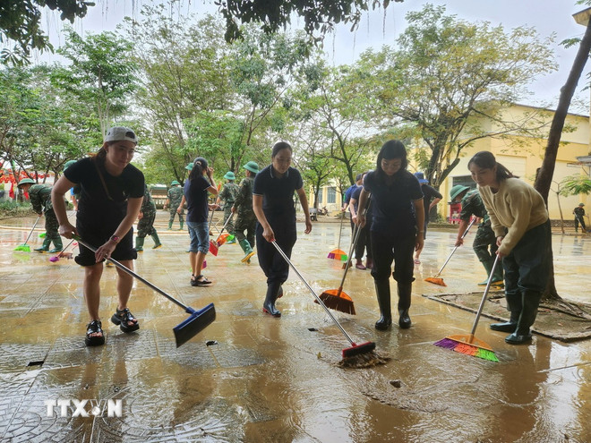 Ngày 4/11, ngay khi nước rút, các lực lượng quân đội, công nhân vệ sinh môi trường cùng thầy cô giáo, dân quân địa phương đã khẩn trương dọn dẹp bùn đất, rác thải, khôi phục cảnh quan đô thị và môi trường học tập, sớm đưa học sinh trở lại trường học trong điều kiện an toàn.