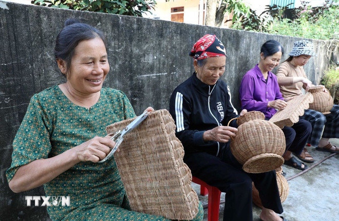 Nhờ sự kết nối của chị Son, ngày càng nhiều phụ nữ tham gia vào công việc đan lát và nâng cao tay nghề ở từng sản phẩm thủ công từ mây tre như, lọ hoa, túi, giỏ xách, khay đựng đồ… Thu nhập tuy không quá cao nhưng ổn định, trung bình từ vài triệu đồng mỗi tháng đã giúp nhiều gia đình cải thiện đời sống.