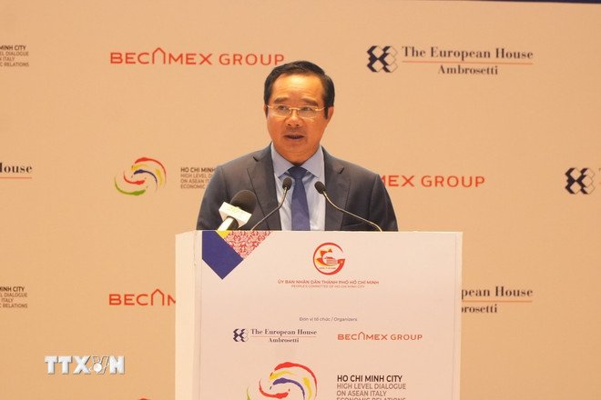 Theo ông Nguyễn Văn Được, trên nền tảng hợp tác sôi động với các đối tác ASEAN cũng như quan hệ bền chặt với các đối tác Italia giàu tiềm năng, Thành phố Hồ Chí Minh có những điều kiện thuận lợi để đóng vai trò là điểm kết nối trong thúc đẩy trao đổi và hợp tác giữa Italia và ASEAN, nhất là trong bối cảnh Italy tăng cường quan hệ với khu vực ASEAN và coi ASEAN là một trong những đối tác trọng tâm. “Với tinh thần “cùng bàn, cùng làm, cùng hưởng,” chúng tôi mong muốn Diễn đàn lần này không chỉ là nơi để các bên gặp gỡ, giao lưu, chia sẻ, mà còn khơi dậy nguồn cảm hứng hành động, cùng nhau khởi tạo những sáng kiến và dự án hợp tác thiết thực - hướng tới những thành quả mang lại sự phồn vinh và thịnh vượng,’ Chủ tịch Ủy ban Nhân dân Thành phố Hồ Chí Minh nhấn mạnh.