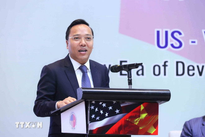Đề cập đến quan hệ hợp tác Việt Nam-Hoa Kỳ, Phó Thủ tướng nêu rõ, năm 2025 đánh dấu 30 năm thiết lập quan hệ ngoại giao giữa Việt Nam và Hoa Kỳ. Một hành trình đầy nỗ lực đưa quan hệ hai nước từ “đối đầu thành đối tác;” đồng thời khái quát năm cụm từ khóa để nói về quan hệ Việt Nam-Hoa Kỳ, đó là: “tin cậy về chiến lược, hợp tác toàn diện, phát triển cùng thắng, đối tác trách nhiệm và kiến tạo tương lai.”