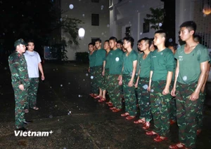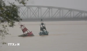 Lực lượng chức năng vẫn túc trực tại khu vực ngập lụt để hỗ trợ người dân./.