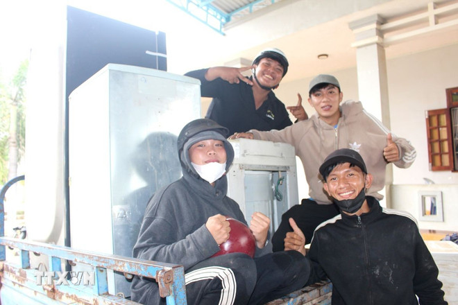 Anh Huỳnh Tân Thạnh, phường Hàm Thắng (tỉnh Lâm Đồng) chia sẻ, thấy số lượng thiết bị hư hỏng nhiều, anh em phải khuân vác và vận chuyển nặng nên đã tham gia hỗ trợ. Mỗi ngày, cả nhóm đi nhận và giao từ 50-70 tủ, máy các loại.