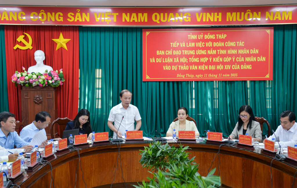 Chiều 11/11, Đoàn công tác của Ban Chỉ đạo Trung ương về nắm tình hình Nhân dân và dư luận xã hội về đại hội đảng bộ các cấp; tổ chức lấy ý kiến và tổng hợp ý kiến góp ý của cán bộ, đảng viên và Nhân dân vào Dự thảo các Văn kiện trình Đại hội XIV của Đảng do đồng chí Phạm Tất Thắng, Ủy viên Trung ương Đảng, Phó Trưởng ban Tuyên giáo và Dân vận Trung ương, Phó Trưởng ban Thường trực Ban Chỉ đạo Trung ương làm Trưởng đoàn, làm việc với Tỉnh ủy Đồng Tháp.
