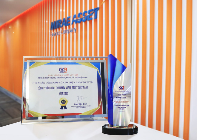 Chiều 30/1, Công ty Tài chính Trách nhiệm hữu hạn Một thành viên Mirae Asset (Việt Nam) vinh dự được Trung tâm Thông tin Tín dụng Quốc gia Việt Nam (CIC) vinh danh là một trong 24 tổ chức tín dụng xuất sắc, tiêu biểu trong hoạt động thông tin tín dụng năm 2025.