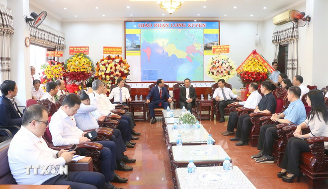 Sáng 18/12, tại phường Long Xuyên (tỉnh An Giang), Phó Chủ tịch Quốc hội Trần Quang Phương cùng đoàn công tác của Trung ương đã đến thăm và chúc mừng Giáng sinh năm 2025 tại Tòa Giám mục Giáo phận Long Xuyên.