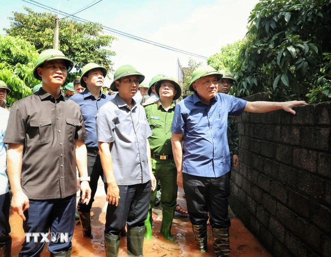 Cùng đi có các đồng chí: Trần Đức Thắng, Ủy viên Trung ương Đảng, Quyền Bộ trưởng Bộ Nông nghiệp và Môi trường; Thượng tướng Phùng Sĩ Tấn, Phó tổng Tham mưu trưởng Quân đội nhân dân Việt Nam và lãnh đạo tỉnh Bắc Ninh.