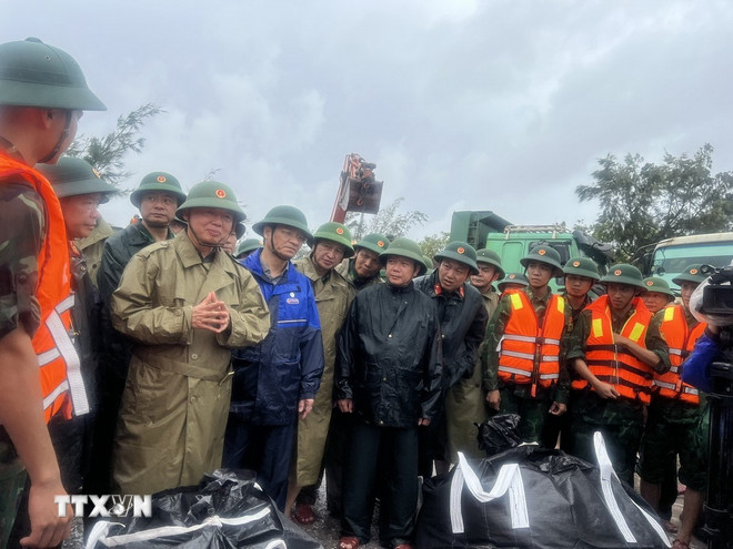 Sau khi nghe báo cáo của chính quyền địa phương, Phó Thủ tướng Chính phủ Trần Hồng Hà biểu dương những nỗ lực, cố gắng của các cấp chính quyền trong xử lý giờ đầu tại vị trí sạt lở, không để lan rộng ra các vị trí khác, cũng như đảm bảo an toàn cho các lực lượng tham gia làm nhiệm vụ trong thời tiết sóng to, gió lớn.