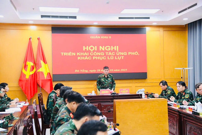 Những ngày qua, mưa lớn liên tiếp gây ngập lụt, sạt lở đất nghiêm trọng tại nhiều khu vực trên địa bàn Quân khu 5, đặc biệt là từ thành phố Đà Nẵng đến phía Bắc tỉnh Quảng Ngãi. Từ sáng 28/10, Bộ Tư lệnh Quân khu tổ chức hội nghị trực tuyến tại 20 điểm cầu để triển khai công tác ứng phó, khắc phục hậu quả mưa lũ. Trung tướng Lê Ngọc Hải, Tư lệnh Quân khu chủ trì hội nghị.