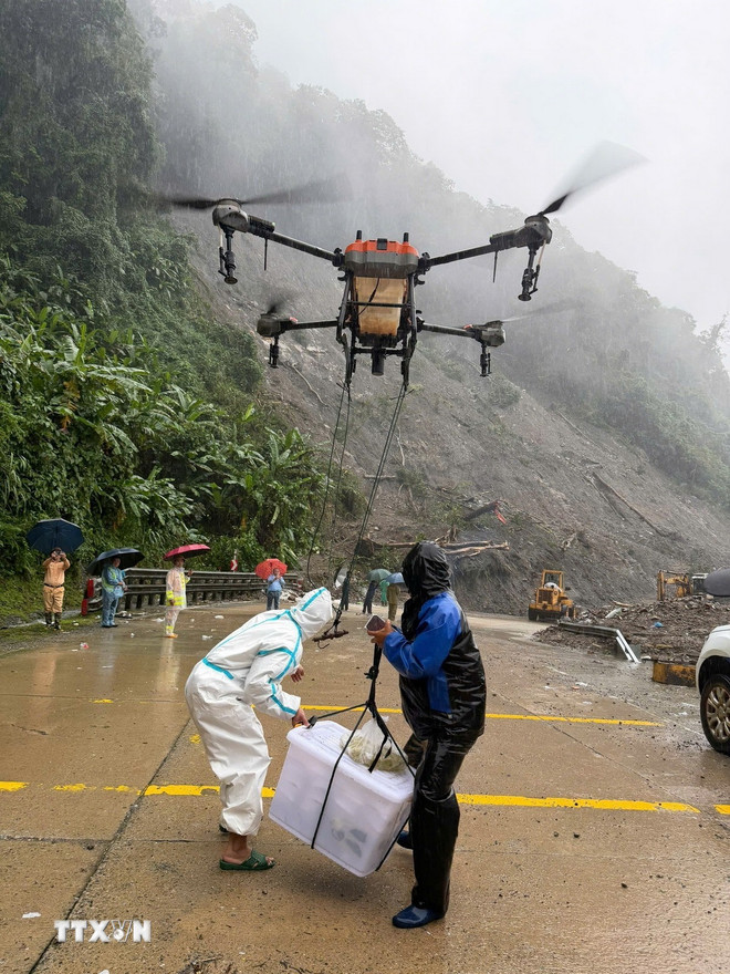 “Chúng tôi đưa thức ăn, nước uống lên nhưng hiện nay, trên đèo mưa quá lớn, xuất hiện thêm nhiều điểm sạt, đất đá tràn ra mặt đường nên không thể tiếp cận được với khu vực các lái xe đang bị mắc kẹt. Hiện đội đang cố gắng hướng dẫn các tài xế đi bộ đến các điểm bán thực phẩm gần nhất để mua thức ăn, nước uống. Với thời tiết mưa lớn như hiện nay, drone cũng không thể bay được,” anh Hồ Đắc Diện nói.