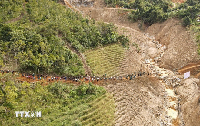 Thượng tá Khuất Xuân Trường, Phó Sư đoàn trưởng Sư đoàn 10, Quân đoàn 34, cho biết thực hiện ý kiến chỉ đạo của Phó Thủ tướng Chính phủ Hồ Quốc Dũng, đơn vị đã triển khai gần 200 cán bộ, chiến sỹ vào vị trí sạt lở để làm đường cho bà con 5 thôn Ngọc Nang, Mô Po, Xa Úa, Ngọc Lân, Tu Răng đi lại. Đến chiều 3/11, sau khoảng 2 ngày triển khai, tạm thời con đường đã được hình thành, người dân đã có thể đi bộ, mang hàng hóa về làng.
