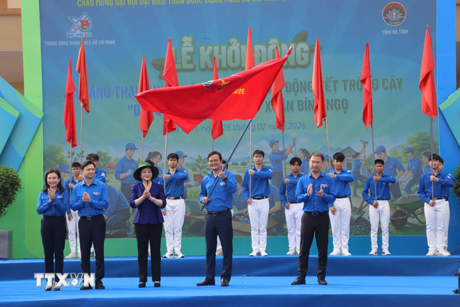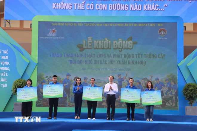 Lễ ra quân Tháng Thanh niên, phát động Tết trồng cây “Đời đời nhớ ơn Bác Hồ” Xuân Bính Ngọ năm 2026 diễn ra tại Khu tưởng niệm anh hùng Lý Tự Trọng (xã Việt Tiến, tỉnh Hà Tĩnh).