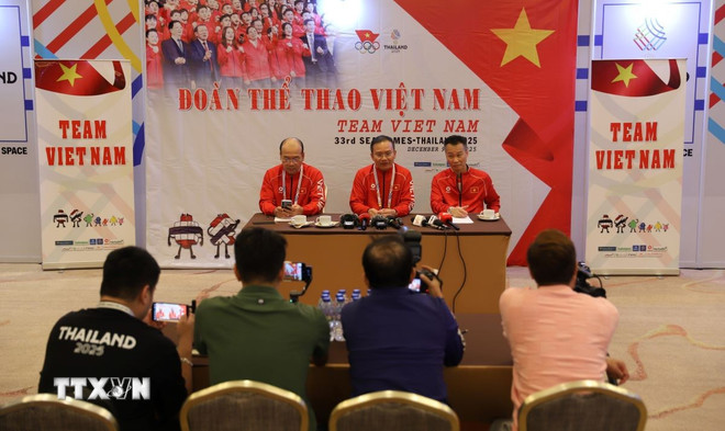 Theo phóng viên TTXVN tại Bangkok, sáng 19/12, Trưởng đoàn Thể thao Việt Nam tại SEA Games 33 Nguyễn Hồng Minh đã chủ trì buổi gặp mặt phóng viên các cơ quan thông tấn, báo chí đang tác nghiệp tại SEA Games 33 để thông tin về tình hình thi đấu của đoàn Thể thao Việt Nam. Cùng tham gia buổi gặp mặt báo chí còn có 2 Phó Trưởng đoàn là Hoàng Quốc Vinh và Lê Thanh Hà.