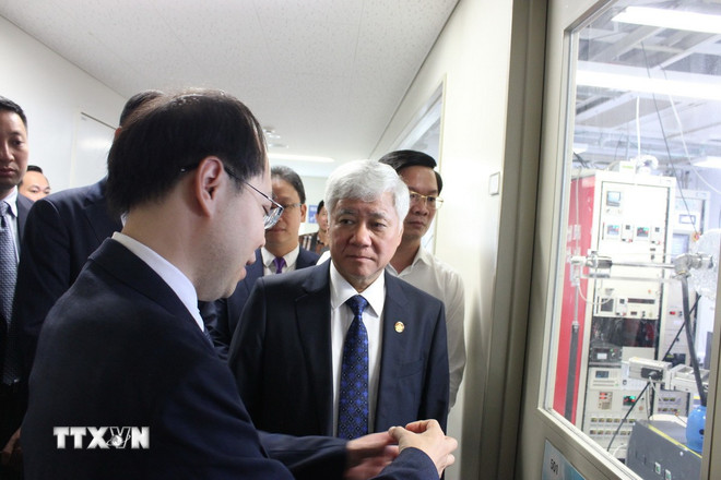 Tại phòng LAB, trợ giảng của Giáo sư Phạm Nam Hải, sinh viên Hồ Hoàng Huy, cho biết phòng LAB có máy quang khắc dùng để thiết kế vi mạch cho chất bán dẫn, là thiết bị có vai trò tối quan trọng vì có thể nâng giá trị của chip bán dẫn.