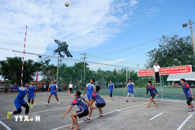 Song song với hoạt động văn hóa, văn nghệ, tại sân Trung tâm Cung ứng dịch vụ công xã Khánh Hưng cũng diễn ra trận giao lưu bóng chuyền giữa đội xã Khánh Hưng và đội của hai huyện Kampong Rou, Svay Chrum.