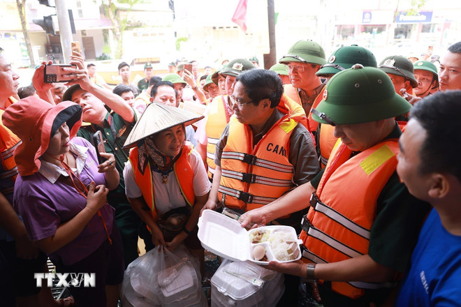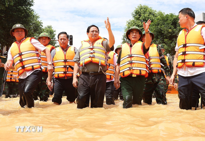 Thủ tướng Chính phủ Phạm Minh Chính đã tới thị sát tình hình tại các phường Phan Đình Phùng, Quan Triều, tỉnh Thái Nguyên - nơi đang bị nước ngập sâu, cô lập, chia cắt, với hàng trăm hộ có nhà bị ngập, thiệt hại nặng nề về kinh tế, đời sống hết sức khó khăn; người dân sống nhờ sự chi viện từ bên ngoài.