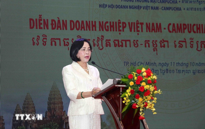 Bà nhấn mạnh Diễn đàn Doanh nghiệp Việt Nam-Campuchia 2025 là cơ hội để cộng đồng doanh nghiệp 2 nước gặp gỡ, chia sẻ kinh nghiệm, tìm kiếm cơ hội hợp tác mới trong các lĩnh vực tiềm năng; lan tỏa tinh thần hợp tác, sẻ chia và đồng hành giữa cộng đồng doanh nghiệp hai nước, góp phần vào sự phát triển chung của hai nền kinh tế, đồng thời vun đắp tình đoàn kết keo sơn, thủy chung giữa hai dân tộc Việt Nam và Campuchia.