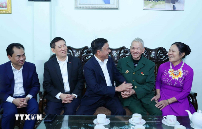 Tiếp đó, Thường trực Ban Bí thư và Đoàn đến thăm và chúc Tết gia đình thương binh Vũ Đức Chơn, 77 tuổi.