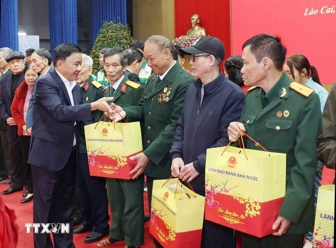 Tại Trung tâm Hội nghị tỉnh Lào Cai, Thường trực Ban Bí thư Trần Cẩm Tú; Phó Thủ tướng Chính phủ Hồ Đức Phớc, Phó Chủ tịch Ủy ban Trung ương Mặt trận Tổ quốc Việt Nam Hà Thị Nga; Bí thư Tỉnh ủy, Chủ tịch Hội đồng Nhân dân tỉnh Lào Cai Trịnh Việt Hùng đã trao quà Tết tặng đại diện 250 gia đình người có công, chính sách, hộ nghèo, công nhân, người lao động trên địa bàn các phường: Yên Bái, Âu Lâu, Văn Phú, Nam Cường, Yên Bình, Việt Hồng, Trấn Yên và lực lượng vũ trang, lãnh đạo Bệnh viện Đa khoa số 1 của tỉnh.