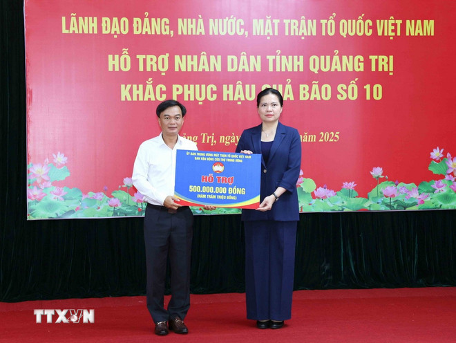 Nhân dịp này, Thường trực Ban Bí thư Trần Cẩm Tú đã trao hỗ trợ của lãnh đạo Đảng, Nhà nước; Phó Chủ tịch Ủy ban Trung ương Mặt trận Tổ quốc Việt Nam Hà Thị Nga, đại diện các nhà tài trợ, doanh nghiệp đã trao hỗ trợ tỉnh Quảng Trị khắc phục hậu quả do bão số 10 gây ra. Tổng số tiền hỗ trợ là 7,5 tỷ đồng.