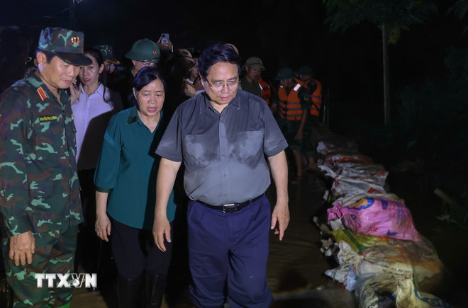 Có mặt tại các điểm đê xung yếu, Thủ tướng Chính phủ Phạm Minh Chính đã trực tiếp đến vùng ngập ven sông để kiểm tra, chỉ đạo công tác chống lũ, ứng cứu sự cố đê điều, bảo đảm an toàn tuyệt đối cho người dân.