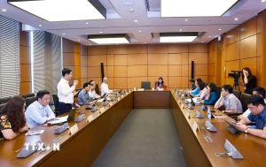 Các đồng chí lãnh đạo Ủy ban Kiểm tra Trung ương tham dự buổi làm việc. (Ảnh: Thống Nhất/TTXVN)