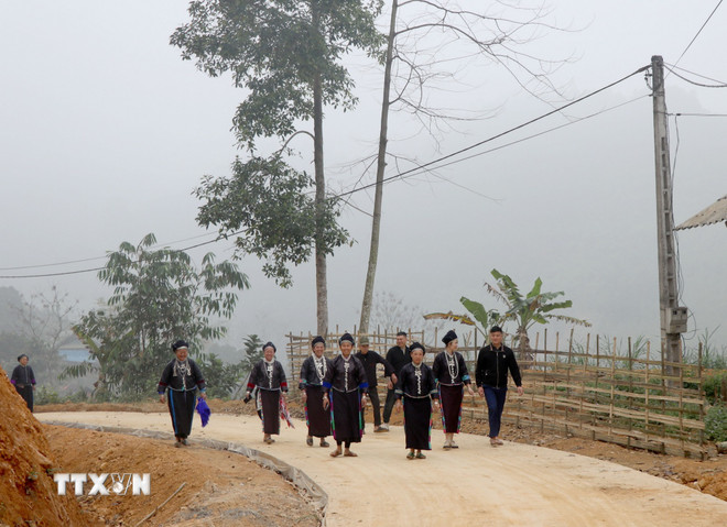 Những ngày giáp Tết Nguyên đán, con đường bêtông phẳng lỳ dẫn vào thôn Bản Giáng, xã Trung Sơn (Tuyên Quang) rộn ràng bước chân người qua lại.