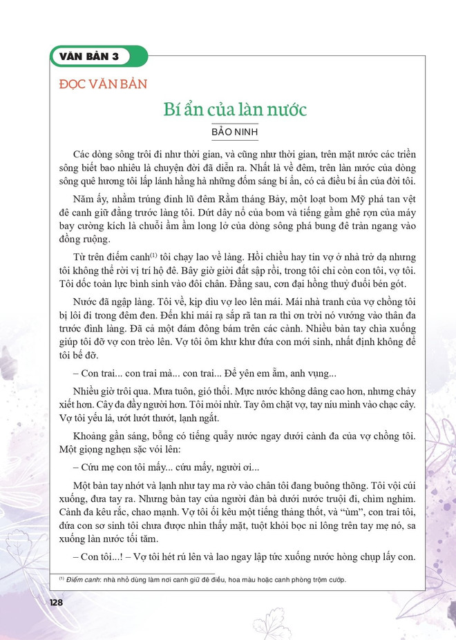 Cũng theo Phó giáo sư Bùi Mạnh Hùng, ngoài “Nỗi buồn chiến tranh” ở lớp 12, trong sách giáo khoa Ngữ văn 9 bộ “Kết nối tri thức với cuộc sống” còn đưa một truyện ngắn của Bảo Ninh, nhan đề “Bí ẩn của làn nước.” Đây là một truyện ngắn rất ngắn, chỉ chưa đến 2 trang sách nhưng có cốt truyện độc đáo, gây xúc động sâu sắc đối với người đọc và gợi ra nhiều suy nghĩ về tình người.