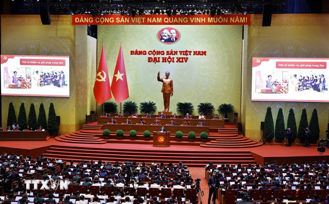 Dự thảo Báo cáo Chính trị trình Đại hội đã thể hiện lời hiệu triệu mạnh mẽ: Dưới lá cờ vẻ vang của Đảng, chung sức, đồng lòng thực hiện thắng lợi các mục tiêu phát triển đất nước đến năm 2030, tự chủ chiến lược, tự cường, tự tin, tiến mạnh trong kỷ nguyên vươn mình của dân tộc.