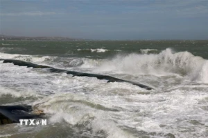 Hiện cơ quan chức năng đang tìm cách liên hệ với tài xế, đồng thời điều xe chuyên dụng lên kéo rơ moóc ra khỏi khúc cua này./.