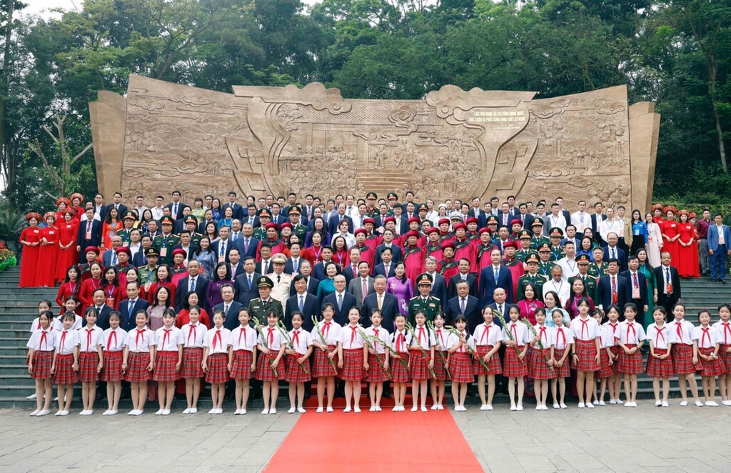 Sau buổi lễ, Tổng Bí thư, Chủ tịch nước Tô Lâm cùng các đồng chí lãnh đạo Đảng, Nhà nước dâng hoa tại Bức phù điêu “Bác Hồ nói chuyện với cán bộ, chiến sĩ Đại đoàn Quân Tiên Phong”; dâng hương tại Đền thờ Quốc Tổ Lạc Long Quân.