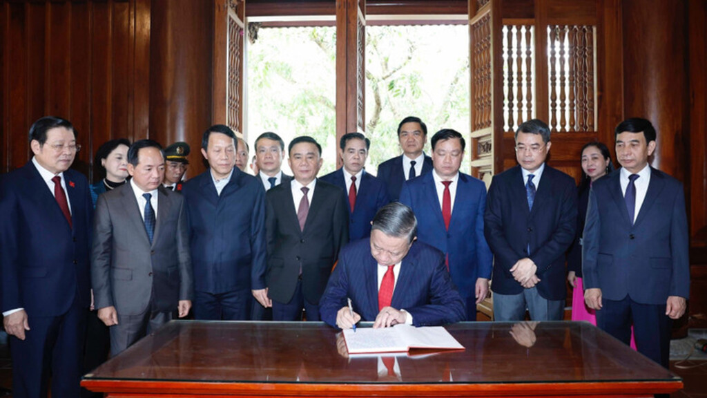Ghi sổ lưu niệm tại đây, Tổng Bí thư Tô Lâm tỏ niềm xúc động được thăm làng Sen, quê hương thân yêu của Chủ tịch Hồ Chí Minh vĩ đại. Nơi đây đã sinh ra và hun đúc nên một nhân cách lớn, một tâm hồn lớn, để từ Làng Sen tỏa sáng con đường cứu nước, cứu dân, khai mở kỷ nguyên độc lập, tự do, hạnh phúc cho dân tộc Việt Nam.
