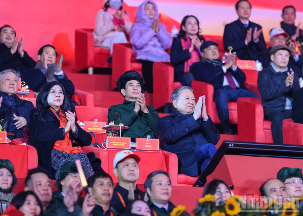 Đồng chí Tổng Bí thư Tô Lâm dự Chương trình. Cùng dự Chương trình, có nguyên Tổng Bí thư Nông Đức Mạnh, các đồng chí Ủy viên Bộ Chính trị khoá XIII, Thủ tướng Phạm Minh Chính; Ủy viên Bộ Chính trị Chủ tịch Quốc hội Trần Thanh Mẫn; Ủy viên Bộ Chính trị, Thường trực Ban Bí thư Trần Cẩm Tú; Ủy viên Bộ Chính trị, Chủ tịch Ủy ban Trung ương Mặt trận Tổ quốc Việt Nam Bùi Thị Minh Hoài... Về phía Thành phố Hà Nội, đơn vị chủ trì, có đồng chí Nguyễn Duy Ngọc, Ủy viên Bộ Chính trị, Bí thư Thành ủy Hà Nội cùng các đồng chí lãnh đạo Thành ủy, Hội đồng nhân dân, Ủy ban nhân dân, Ủy ban Mặt trận Tổ quốc Thành phố, và đông đảo các tầng lớp nhân dân tham dự.