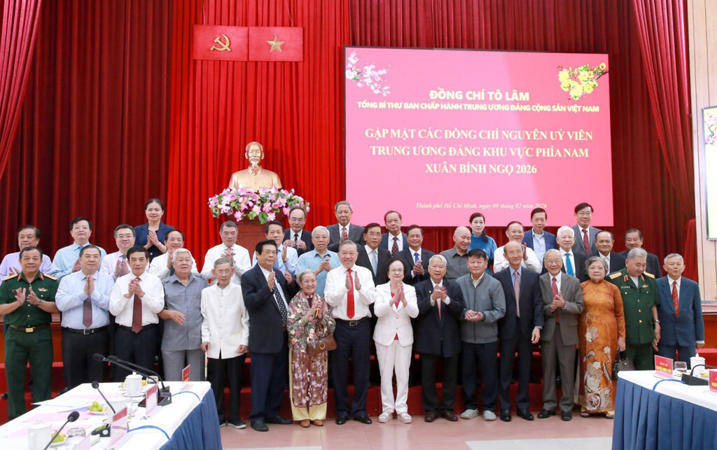 Nhân dịp Tết Nguyên đán Bính Ngọ 2026, sáng 9/2, tại Thành phố Hồ Chí Minh, Tổng Bí thư Tô Lâm đã gặp mặt các đồng chí nguyên Ủy viên Trung ương Đảng khu vực phía Nam.