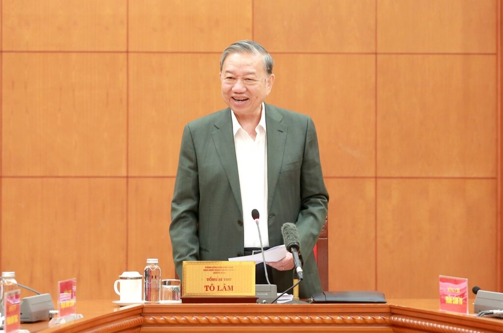 Sau khi nghe báo cáo và ý kiến phát biểu của các đại biểu dự họp, đồng chí Tổng Bí thư Tô Lâm thay mặt Bộ Chính trị, Ban Bí thư đánh giá cao kết quả và biểu dương những nỗ lực, cố gắng, tinh thần trách nhiệm cao với công việc của các Tiểu ban; đề nghị các Tiểu ban tiếp tục chỉ đạo quyết liệt để hoàn thành mọi nội dung công việc đúng tiến độ, chuẩn bị thật tốt các điều kiện để tổ chức thành công Đại hội XIV.