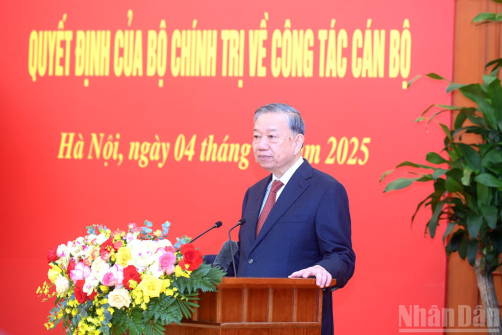 Chúc mừng các đồng chí được Bộ Chính trị tín nhiệm phân công, giao nhiệm vụ mới, Tổng Bí thư Tô Lâm nêu rõ, thời gian qua, với quyết tâm chính trị rất lớn, cả nước đã cơ bản hoàn thành toàn diện việc sắp xếp, tinh gọn tổ chức bộ máy trong hệ thống chính trị; hoàn thành tốt đẹp Đại hội Đảng bộ trực thuộc Trung ương và hiện đang tích cực chuẩn bị thật tốt các điều kiện để tổ chức thành công Đại hội đại biểu toàn quốc lần thứ XIV của Đảng. Để chuẩn bị một bước cho công tác nhân sự, căn cứ vào những tiêu chuẩn, điều kiện và yêu cầu công tác của các cơ quan, đơn vị nói riêng và cả hệ thống chính trị nói chung, Bộ Chính trị đã xem xét rất thận trọng, bảo đảm sự ổn định, kế thừa và phát triển đội ngũ cán bộ lãnh đạo cấp cao của Đảng.