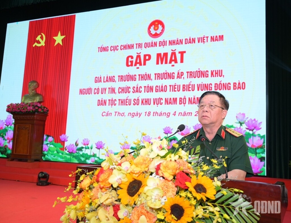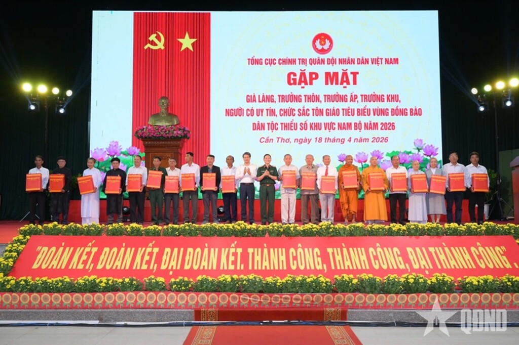 Sáng 18/4, tại Thành phố Cần Thơ, Tổng cục Chính trị QĐND Việt Nam tổ chức Chương trình gặp mặt già làng, trưởng thôn, trưởng ấp, trưởng khu, người có uy tín, chức sắc tôn giáo tiêu biểu vùng đồng bào dân tộc thiểu số khu vực Nam Bộ năm 2026. Đại tướng Nguyễn Trọng Nghĩa, Ủy viên Bộ Chính trị, Bí thư Trung ương Đảng, Ủy viên Thường vụ Quân ủy Trung ương, Chủ nhiệm Tổng cục Chính trị QĐND Việt Nam dự và phát biểu chỉ đạo.
