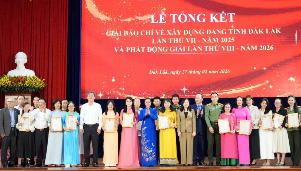 Ngày 27/2, Tỉnh ủy Đắk Lắk đã tổ chức Lễ trao Giải báo chí về xây dựng Đảng tỉnh Đắk Lắk lần thứ VII - năm 2025 và phát động Giải lần thứ VIII – năm 2026.