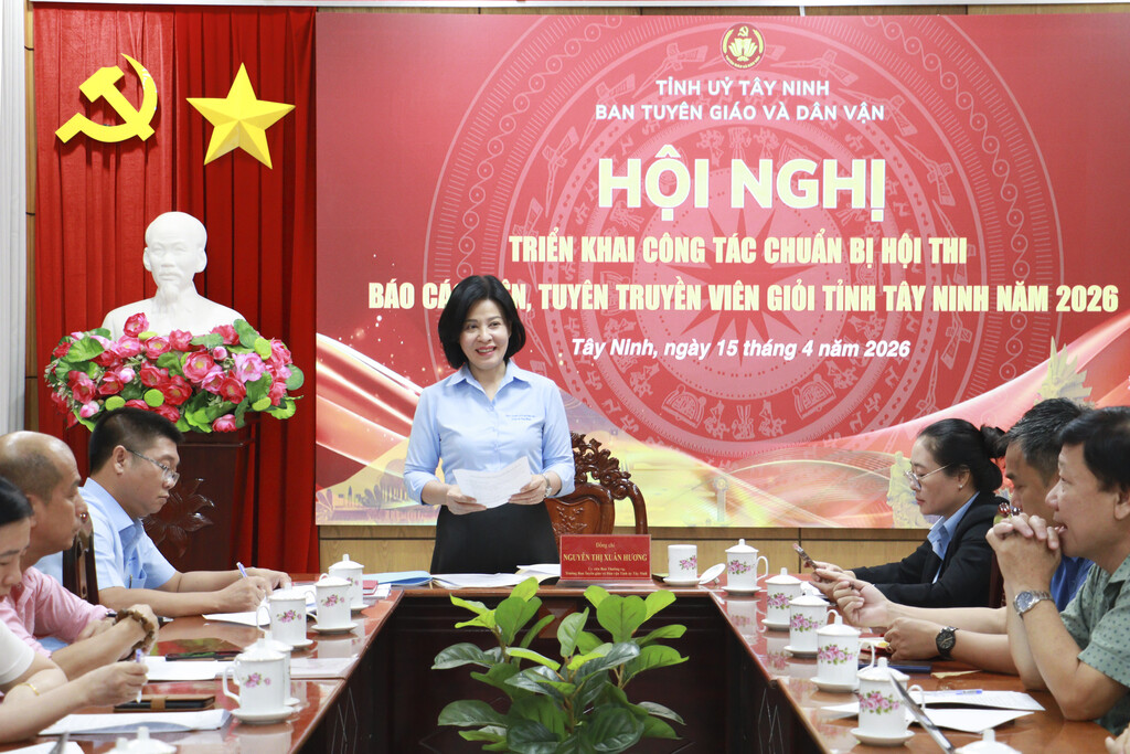 Ngày 15/4, Ban Tuyên giáo và Dân vận Tỉnh uỷ Tây Ninh tổ chức Hội nghị triển khai công tác chuẩn bị Hội thi Báo cáo viên, tuyên truyền viên giỏi tỉnh Tây Ninh năm 2026.
