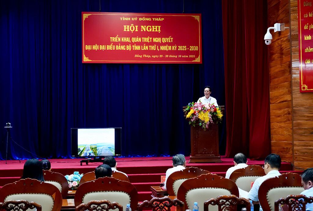 Ngày 30/10, Hội nghị triển khai, quán triệt Nghị quyết Đại hội đại biểu Đảng bộ tỉnh Đồng Tháp lần thứ I, nhiệm kỳ 2025 – 2030 đã hoàn thành các nội dung đề ra. Hội nghị kết nối trực tuyến đến các đảng ủy trực thuộc Tỉnh ủy, các cơ quan, đơn vị trong tỉnh với 295 điểm cầu, hơn 33.327 đảng viên tham dự.