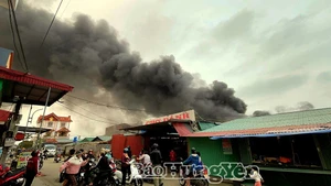 Vụ cháy chợ Dành ở xã Bắc Thụy Anh (Hưng Yên) vào cuối giờ chiều 31/1 không gây thiệt hại về người nhưng đã thiêu rụi 17 gian hàng của các tiểu thương trong chợ, ước tính thiệt hại hàng tỷ đồng. -