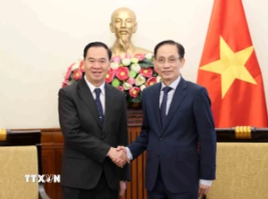 Bộ trưởng Ngoại giao Lê Hoài Trung tiếp Bộ trưởng Bộ Giáo dục và Thể thao Lào