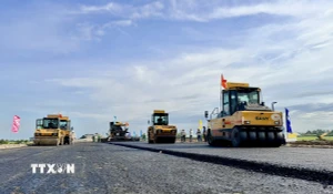 Các nhà thầu đang huy động tối đa nhân lực, máy móc, tổ chức thi công liên tục ngày đêm để hoàn thiện những hạng mục cuối cùng, quyết tâm đưa công trình về đích đúng hẹn. -